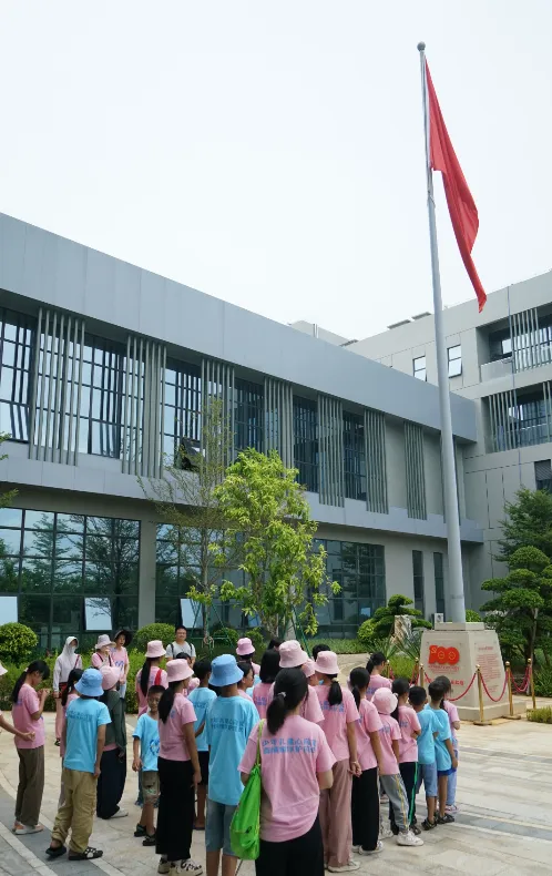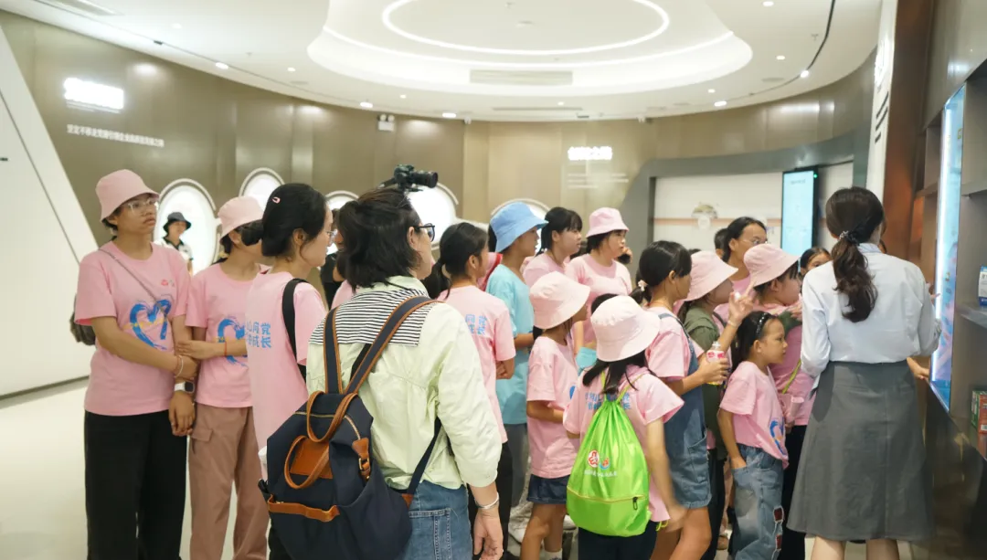 紧接着,孩子们来到了建党百年庆典红旗——070号红旗前。讲解员讲述了304am永利集团药业集团与庆典红旗的深厚渊源。孩子们听得津津有味,眼中闪烁着对党和国家的热爱与敬仰。